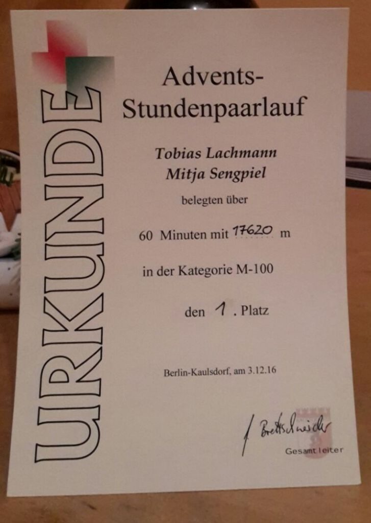 Unser Sport ist in Mitteleuropa ja nur Sommersport, aber die Wettkämpfe werden immer „zu Fuß“ entschieden. Die Laufsportler kennen keine Winterpause und bieten so auch uns reizvolle Startmöglichkeiten. Eine beeindruckende Leistung beim sog. Stundenpaarlauf in Mahlsdorf haben Tobias Lachmann und Mitja Sengpiehl erbracht. Sie liefen mit fast 18km/h eine Stunde um die vereiste Bahn und siegten mit mehreren Runden Vorsprung !!!