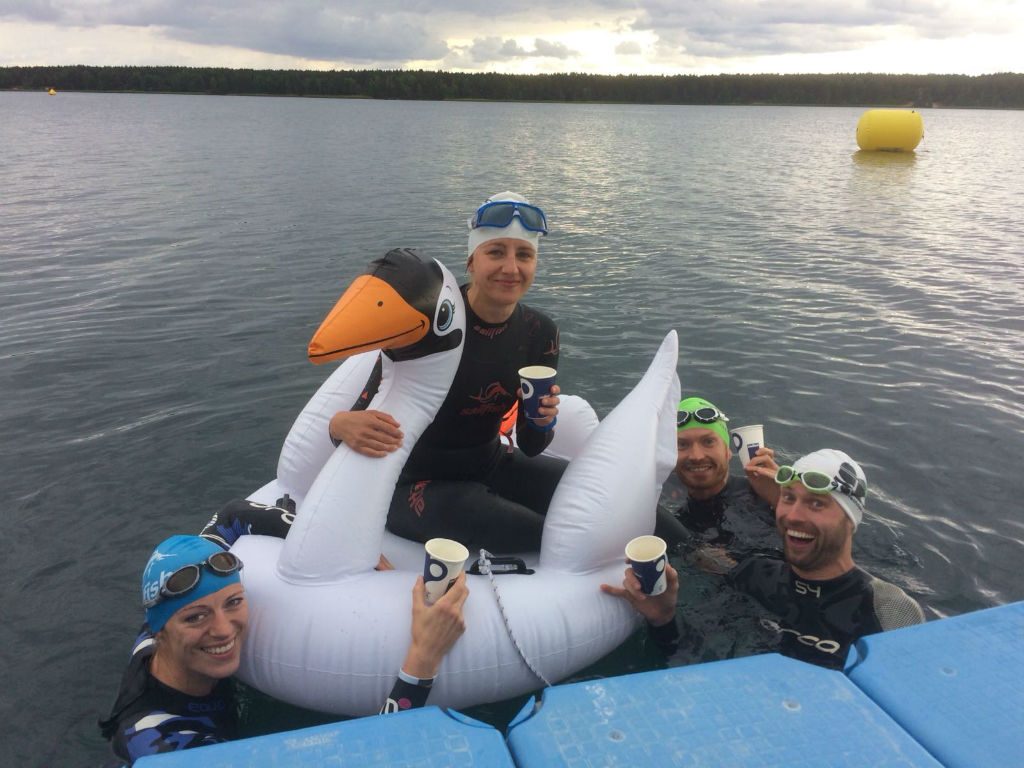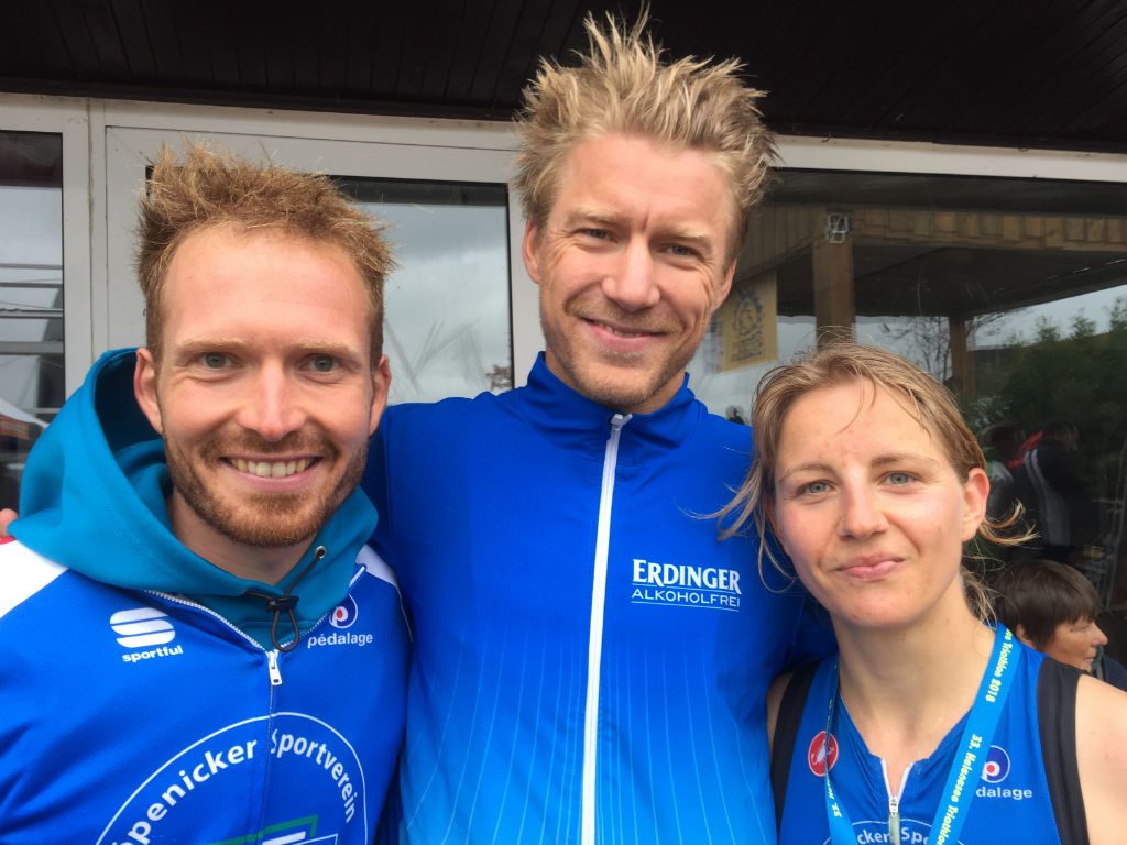 Der Heleneseetriathlon wartete in diesem Jahr mit hawaiianischem Flair auf. Wie bei seinem großen Bruder konnte man beim Test der Schwimmstrecke am Vortag einen Stopp auf dem Kaffeeboot einlegen. Zwar waren die Temperaturen im herbstlichen Bereich angesiedelt, dennoch waren das Schwimmen im glasklaren See und der heiße Kaffee eine gelungene Kombination. Das Wetter am Wettkampftag zeigte sich keinen Deut besser. Durch Regenschauer und Temperaturen deutlich unter dem Wohlfühlbereich hielt sich die Vorfreude etwas in Grenzen. Über die Olympische Distanz gingen 116 Einzelstarter ins Rennen, unter ihnen auch der Triathlonprofi Nils Frommhold. Dieser verließ nach 15:42 min das Wasser. Jedoch kam es während des Schwimmens durch einen Verkehrsunfall zur Sperrung der Radstrecke, sodass gleich ein spontaner Wechsel in die Laufschuhe erfolgte. Diesen olympischen Swim and Run beendeten Anne nach 01:22.19 h und Sebastian nach 0:56:30 h.