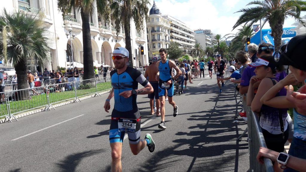 Kurz nach einem sehr dramatischen Sonnenaufgang in der Bucht vor Nizza erfolgte für die über 3000 Athleten der Sprung ins Mittelmeer per Rolling Swimstart. Vom Salz gut gepökelt und von den Wellen ordentlich durchgeschaukelt ging es dann durch eine sehr lange Wechselzone auf die anspruchsvolle 91km Radrunde. Nach 10 flachen Kilometern zum Einrollen, schraubte sich die Strecke zum Gipfel des 1000m hohen Col de Vence, bevor es auf einer technisch äußerst anspruchsvollen Abfahrt zurück Richtung Nizza ging. Meine Beine waren an diesem Tag wohl nicht die allerbesten und so wechselte ich etwas später als gedacht mit einer Radzeit von 02:59:06h in die Laufschuhe und begab mich auf die berühmte Promenade des Anglais. Von der Sonne durchgebraten reichte es auf der sehr flachen Strecke noch zu einem Halbmarathon von knapp unter 1:30h. Mit einer Gesamtzeit von 5:09:27h belegte ich einen Platz im Mittelfeld meiner Altersklasse.