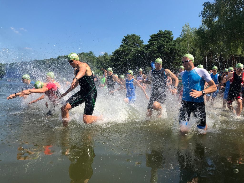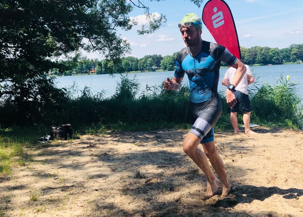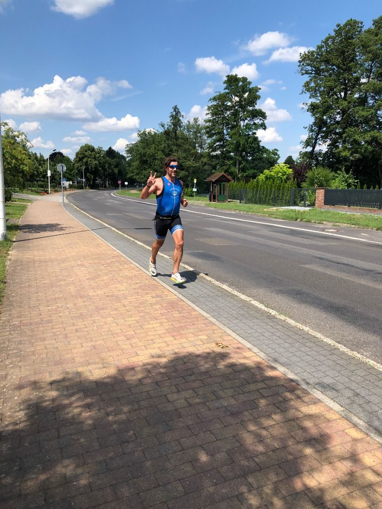 Diesmal standen Stefan und Sebastian gemeinsam an der Startlinie, um die olympische Distanz zu bestreiten: Eine Schwimmrunde von 1500m, anschließend eine mit 250 Höhenmetern sehr wellige Radrunde von 37,3km, sowie eine zur Hälfte sehr krossige Laufstrecke um den Müllroser See. Dass sich die Zwei direkt vergleichen würden, war ja klar! So stieg Sebastian 2 Minuten vor Stefan aus dem Wasser. Dennoch konnte Stefan nach etwa der Hälfte der Radrunde Sebastian mit einem freundlichen „Peace“ begrüßen und ihn daraufhin bis in die Wechselzone begleiten. Wie so oft entscheidet der Lauf im Triathlon! So erkämpfte sich Sebastian seinen Vorsprung von 2min zurück. Am Ende waren beide mit den Plätzen 11 und 12 zufrieden und hatten einen schönen Raceday!
