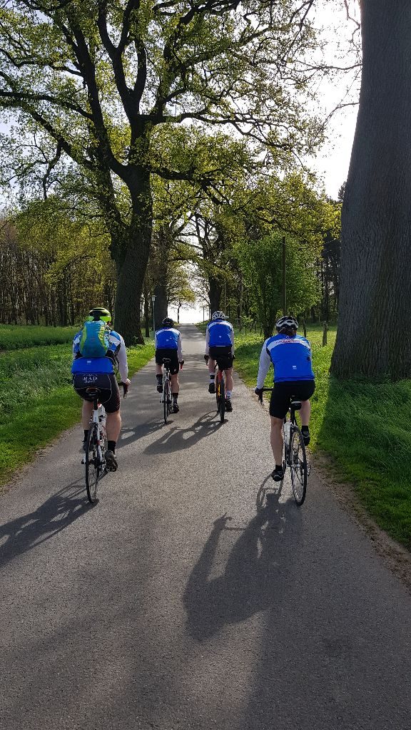 Der schönen Strecke wegen, um nicht zu früh anzukommen aber natürlich auch um möglichst viele Trainingskilometer zu sammeln, fuhren sie größtenteils den Havelradweg entlang. In Liebenwalde sammelten sie Micha ein, der unbedingt vor der Haustür starten wollte, um die 200k an diesem Tag voll zu machen. In der alten Ziegeleifabrik Mildenberg brannten sie zwar keine Ziegel aber dafür Spuren in den Asphalt und fuhren straight weiter Richtung Müritz. Damit es nicht langweilig wird und um auch ein paar Intervalle einzustreuen, wurden Ortsschildsprints ausgetragen. Irgendwann kam aber das vom Zielort Bollewick und wenn man schon siegessicher die Arme empor reisst, kann es halt sein, dass sich doch noch einer im Sprinterloch ansaugt um den Tagessieg in letzter Sekunde an sich zu reissen, Bähm!