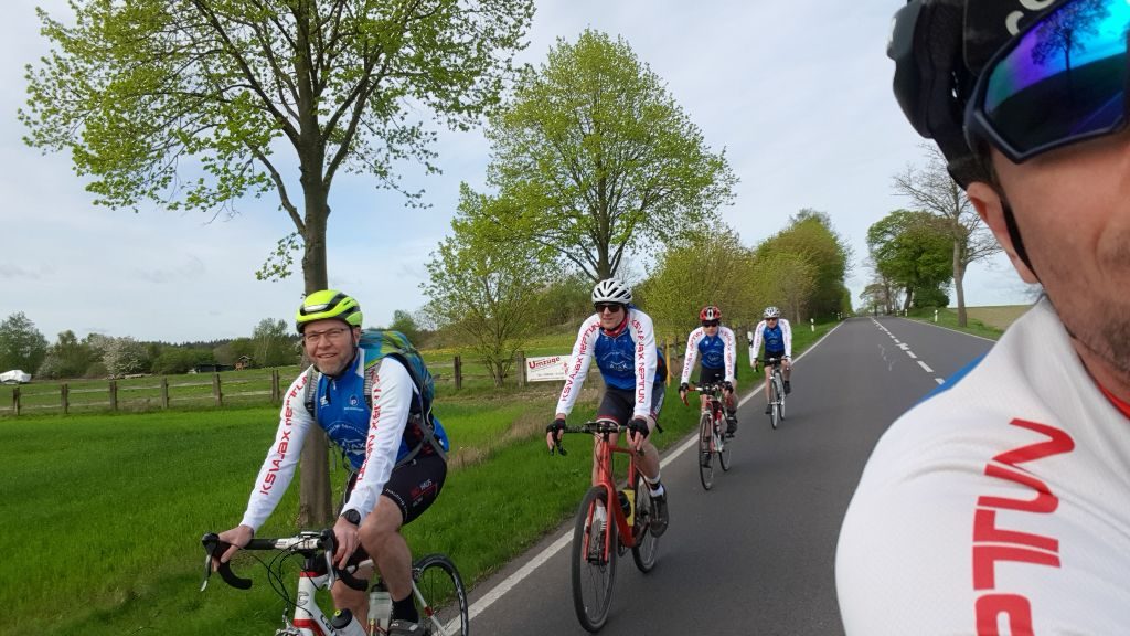 Die Rückfahrt war dann mit Rückenwind quasi ein Katzensprung und bei etwas kühleren Temperaturen, machte sich die Vereinsjacke wiedermal bezahlt! Endlich die ersten Basekilometer in feinster Gesellschaft absolviert, geht es langsam Richtung Saisonstart auch wenn einige bereits die ersten Wettkämpfe absolviert haben.